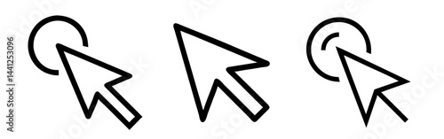 Cursor arrow vector icon set, mouse pointer clicking and interacting symbols for web and UI design, line art illustration, transparent background