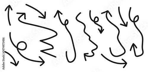 curved arrows collection, arrow set vector element design, curved line, wavy curved line