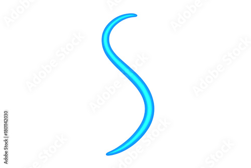 Curved blue neon light line creating an s-shape with glowing effect, abstract bright tube design on transparent background
