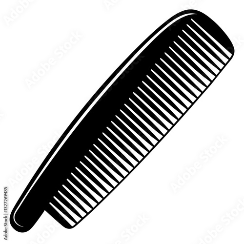 Curved Comb with Evenly Spaced Teeth - Black Vector Illustration