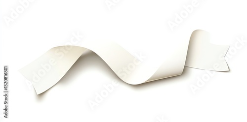 Curving Cream Ribbon Banner Design Element on White Background Backdrop