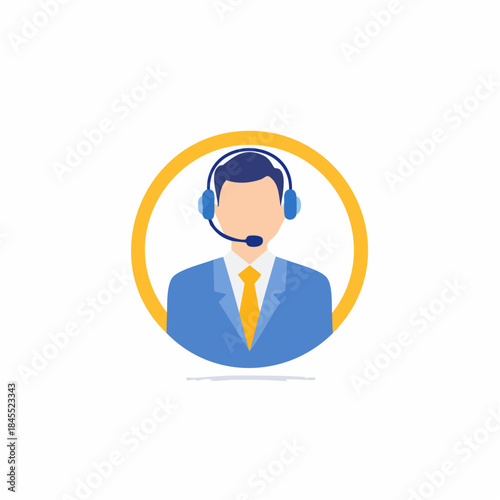 Customer Service Representative Wearing Headset Illustration in a Circular Frame