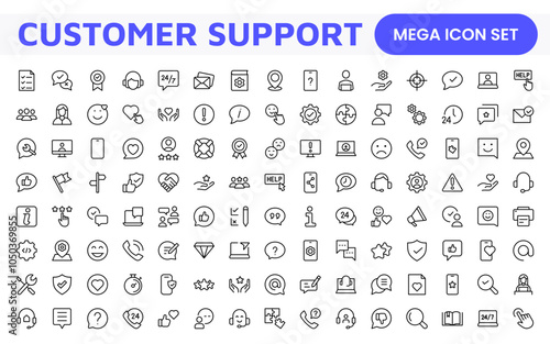 Customer Support Icon Set. Icons for enhancing user assistance, perfect for help centers, chat interfaces, and service platforms to streamline communication and improve user experience.