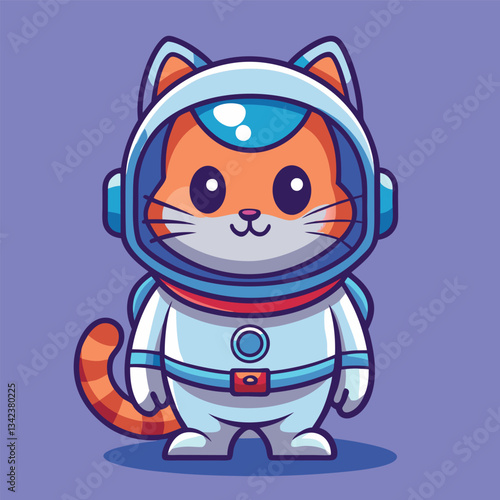 Cute Astronaut Cat Logo Illustration with Solid Color Background