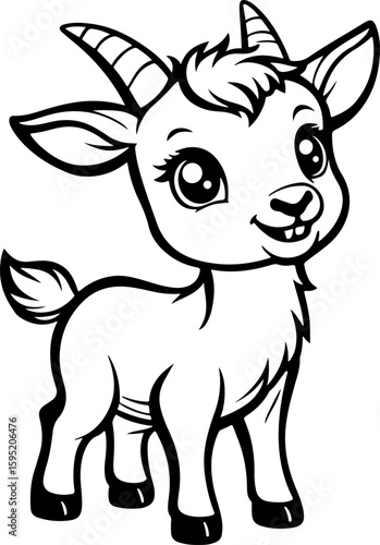 Cute Baby Goat Coloring Page – Cartoon Farm Animal Vector Illustration for Kids