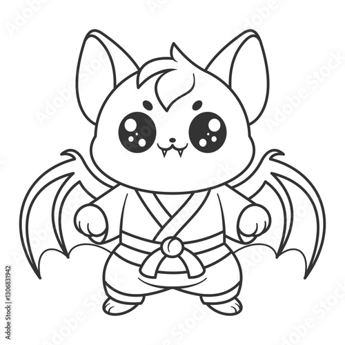 Cute bat doing martial arts stance, for coloring