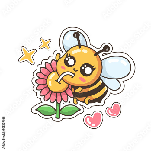 cute bee sucking flower nectar illustration. vector design of kawaii honey bee, sunflower, and heart. great for mascots, logos, stickers, t-shirts and more
