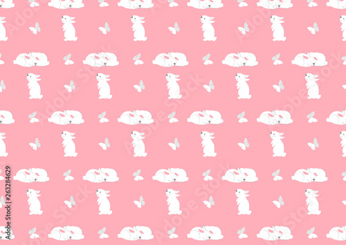 Cute bunny background. Illustration of funny bunnies with easter eggs and spring flower. Pastel color eggs easter background for textile, fabric, covers, scrap, wallpapers, print, gift wrapping