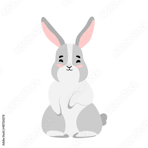 Cute Bunny isolated vector Illustration. Happy Easter design. Grey rabbit in cartoon style for baby t-shirt print, fashion print design, kids wear, baby shower celebration greeting and invitation card