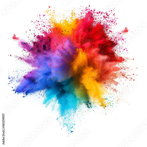 cute burst of colored powder exploding on a clean white backdrop.