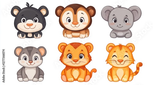 Cute cartoon animal characters, bear, monkey, koala, and tiger illustrations.