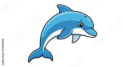 Cute Cartoon Blue Dolphin Illustration: Happy Marine Animal Mascot or Clipart