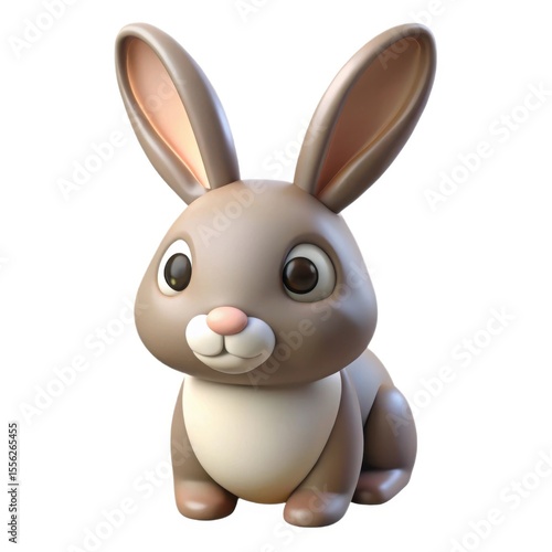 Cute cartoon brown bunny rabbit with big ears isolated on white background