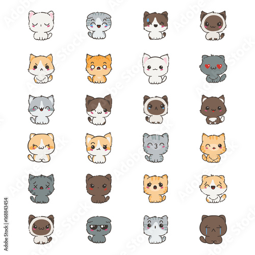 Cute cartoon cats and dogs with different emotions. Sticker collection.