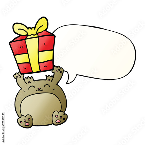 cute cartoon christmas bear and speech bubble in smooth gradient style