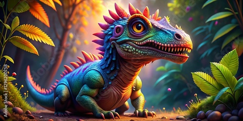 Cute Cartoon Dinosaur with High Depth of Field PNG Image