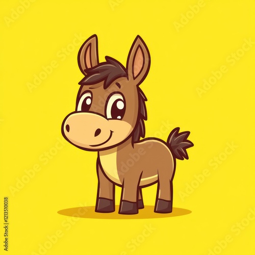 Cute cartoon donkey on yellow background. Possible use children's book illustration