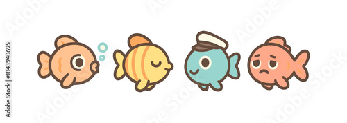 Cute cartoon fish characters with varied expressions in a minimalist style