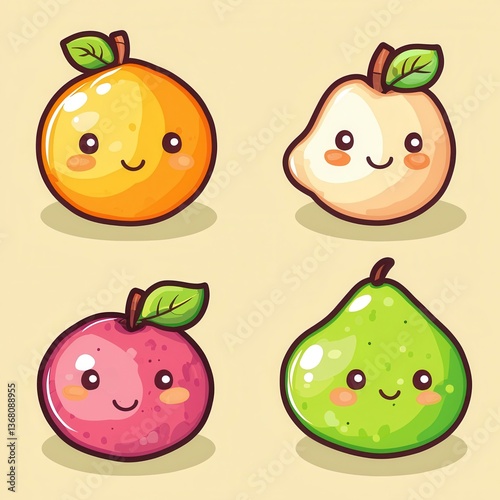 Cute Cartoon Fruits with Smiling Faces and Bright Colors