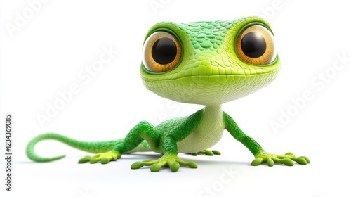 Cute cartoon gecko, white background, children's book illustration (1)