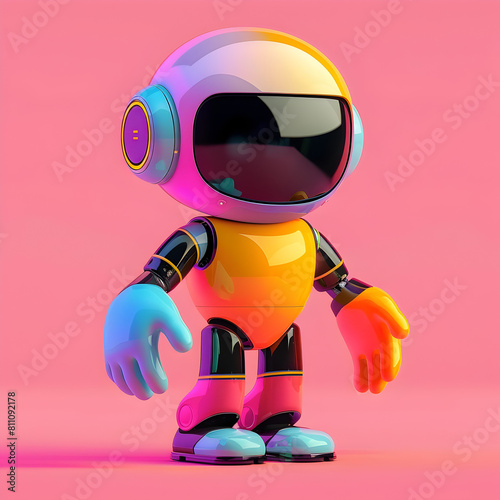 Cute Cartoon Humanoid Robot Handshake in Virtual Reality Representing Technology and Human Interaction