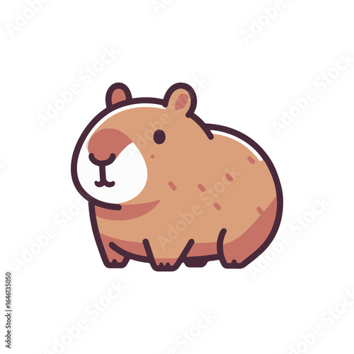 Cute cartoon illustration of a small brown rodent sitting calmly against a white background