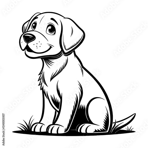 Cute Cartoon Labrador Puppy Sitting in Grass