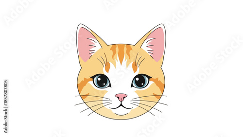Cute cartoon orange tabby cat face with big eyes on white background