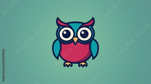 Cute cartoon owl on teal background. Possible use Children's book illustration (1)