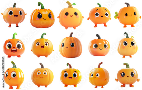 Cute Cartoon Pumpkin Characters Set with Transparent Background - Ideal for Halloween and Autumn Designs