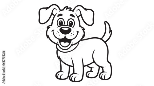 Cute Cartoon Puppy Dog, Black and White Line Art, Coloring Page