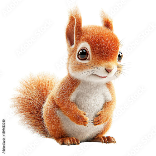 Cute cartoon squirrel with orange fur and fluffy tail standing upright isolated PNG illustration for children’s art, digital, vector use