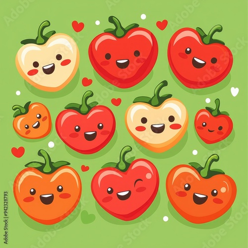 Cute Cartoon Tomatoes with Heart-Shaped Faces