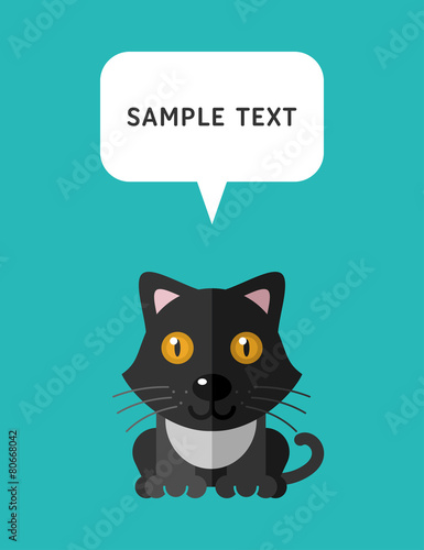 Cute Cat In Flat Design Style With Speach Bubble