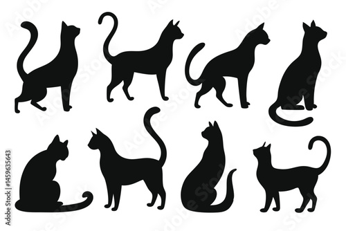 Cute Cat Silhouette Collection – Elegant Feline Shapes Vector Pack