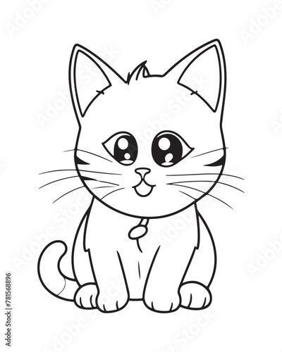 Cute Cat Vector, Cat Coloring Page, Beautiful Cat Black and White, Cat Vector illustration