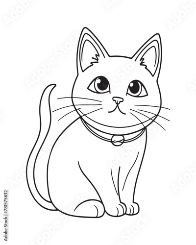 Cute Cat Vector, Cat Coloring Page, Beautiful Cat Black and White, Cat Vector illustration