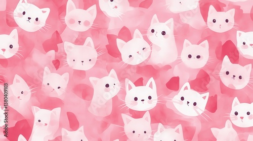 Cute Cats on Pink Background with Hearts and Playful Expressions