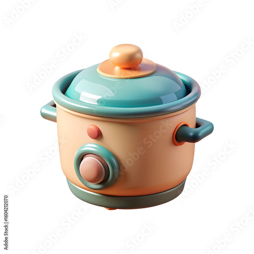 Cute ceramic pot with lid isolated on transparent background