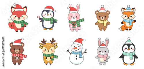 Cute Christmas Animal Character Set