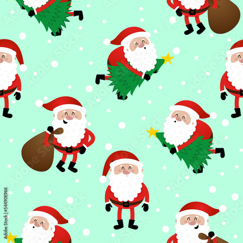 Cute christmas pattern with several funny Santa Claus - Adorable Xmas characters. Hand drawn doodle set for kids. Good for textile, nursery, wallpaper, clothes. Christmas gift wrapping paper.
