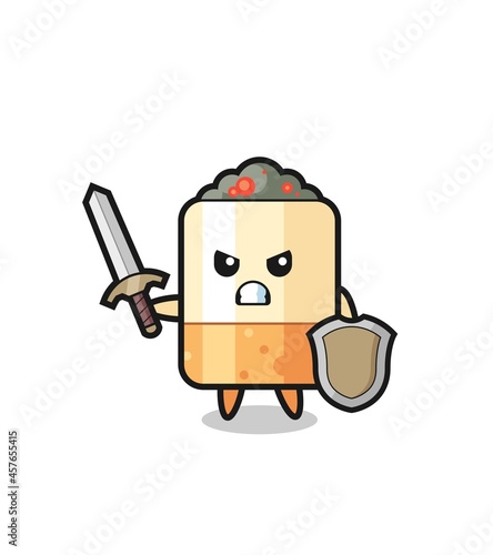 cute cigarette soldier fighting with sword and shield