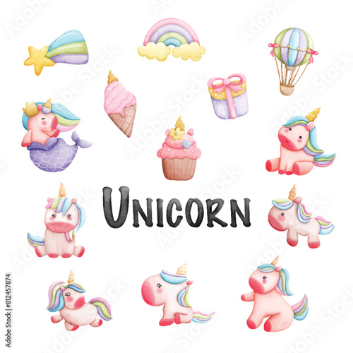 Cute Colorful of Unicorn set Ilustration