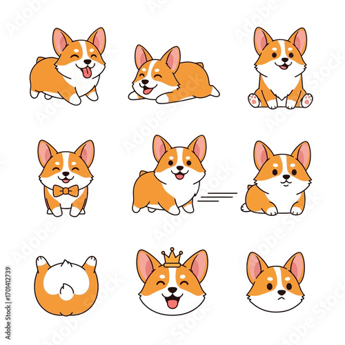 Cute Corgi Dog Cartoon Vector Illustration Pack