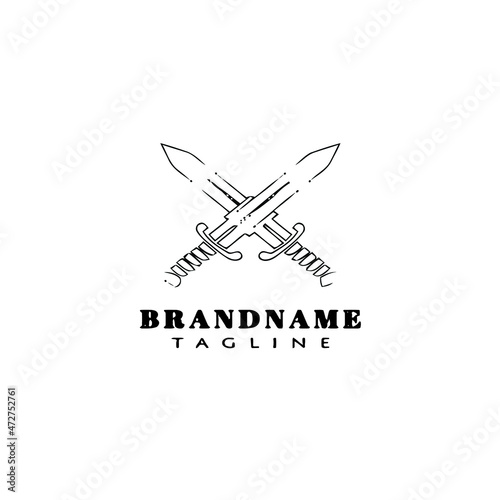 cute crossed sword logo cartoon design template icon black isolated vector illustration