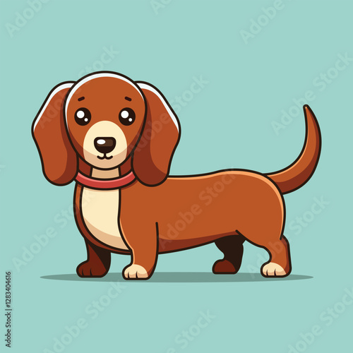 Cute Dachshund Dog Standing Cartoon Vector Icon Illustration. Animal Nature Icon Concept Isolated Premium Vector. Flat Cartoon Style