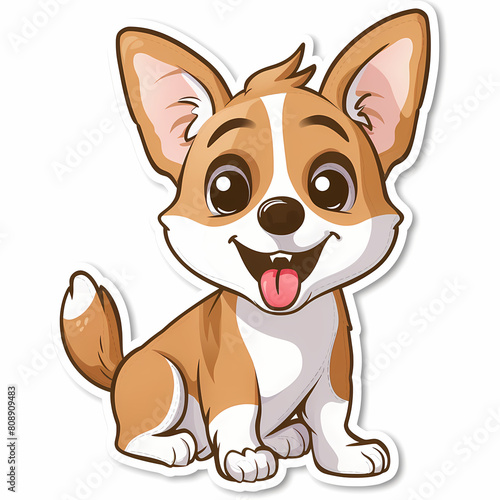 Cute dog cartoon on a White Canvas Sticker,vector image