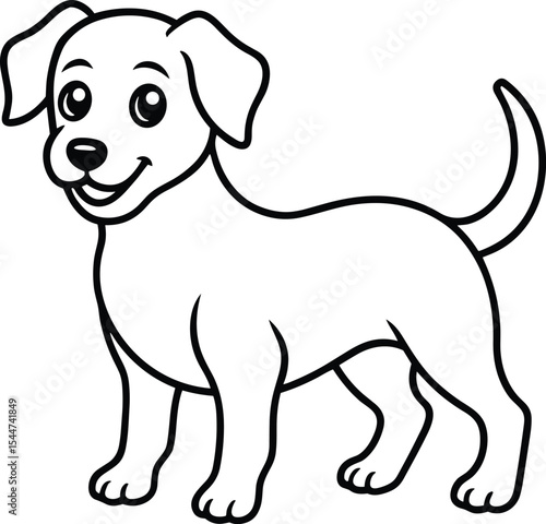 Cute Dog Line Art Outline for Coloring Page, Simple Puppy Cartoon Black and White Vector, Standing Happy Dog Outline Drawing Clipart.