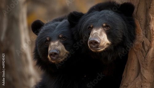 Cute dog sitting in the snow, looking at the camera generated by AI