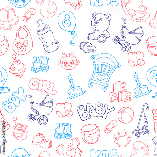 Cute doodle baby seamless pattern